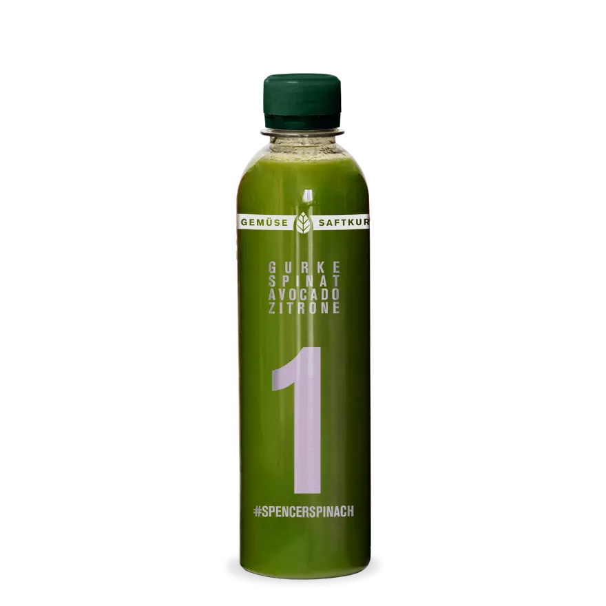 Der Saft Nr. 1 in der Gemüse-Saftkur - Spencer Spinach - ist Dein Frischekick für einen gesunden Start in den Tag. Die Gurke, Avocado und Zitrone runden den frischen Geschmack unseres Spencer Spinach ab und sorgen zugleich für eine herrliche Konsistenz.