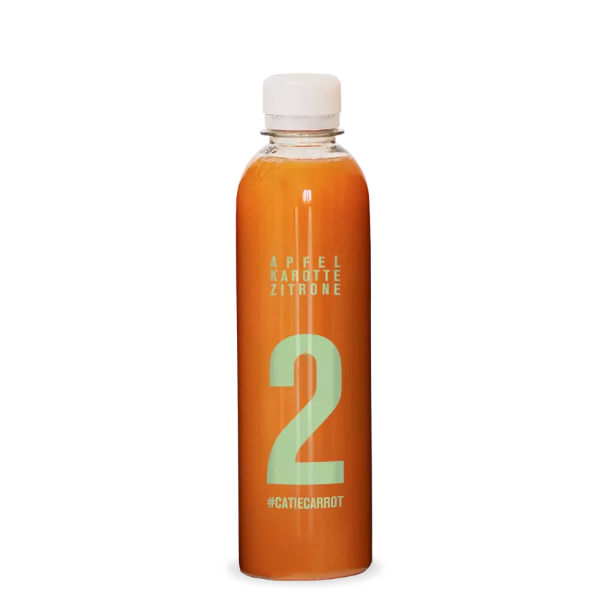 Catie Carrot ist der zweite Saft in der Klassik-Saftkur. Mit Apfel, Karotte und Zitrone ist sie ein echter Klassiker und bringt dich gut durch den Vormittag.