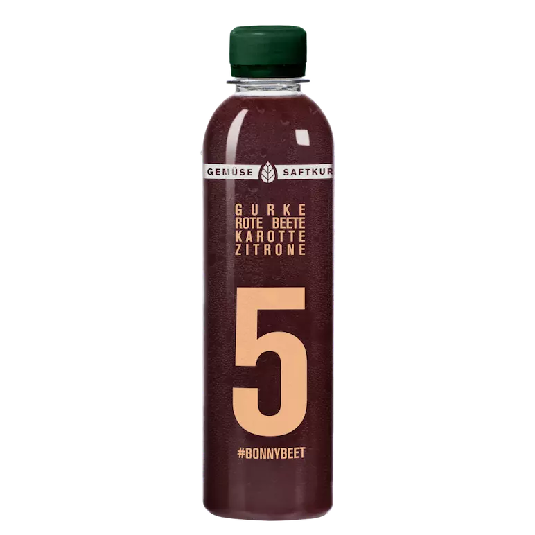 Als Saft Nr. 5 in der Gemüse-Saftkur und somit kurz vor dem Ziel versüßt dir unsere Bonny Beet den Tag. Die Kombination aus Rote Beete und Karotten verleiht Bonny eine angenehm süße Note.